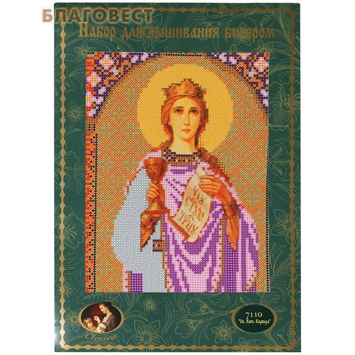 В набор входит: схема для вышивания, нанесенная на ткань, бисер, инструкция, бисерная игла.